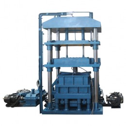 壓機(jī)基本構(gòu)成:底座平臺(tái)、橡膠減振、振動(dòng)平臺(tái)、導(dǎo)向立柱、壓機(jī)重錘壓頭、上橫梁、振動(dòng)器、液壓缸、液壓站、控制系統(tǒng)等組成。